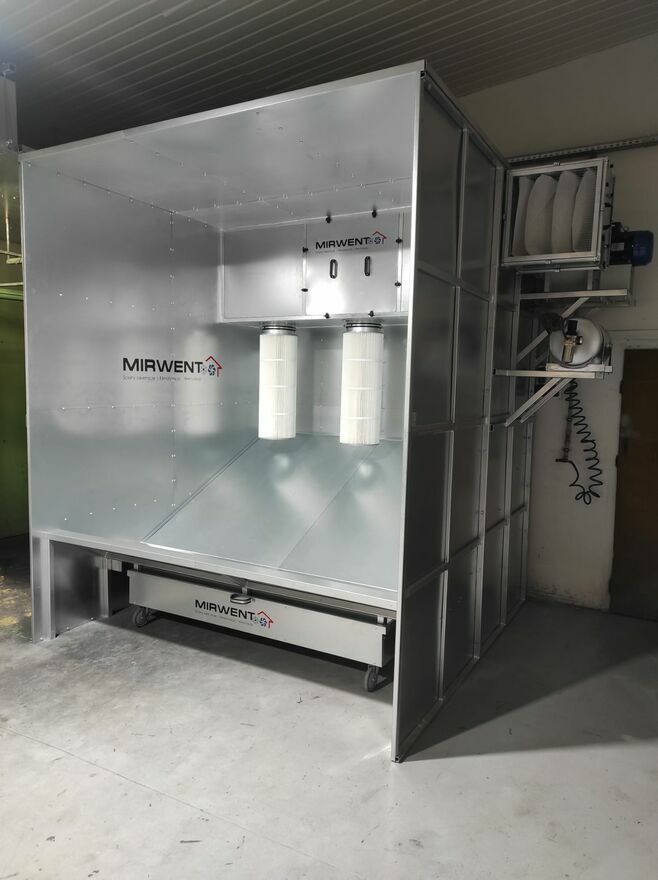 Kabina do malowania proszkowego na wymiar – profesjonalna kabina lakiernicza od Mirwent Sp. z o.o.Szukasz kabiny do malowania proszkowego dopasowanej do Twojej produkcji?