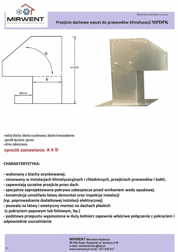 Przejście dachowe wpust do przewodów klimatyzacji STAN MAGAZ